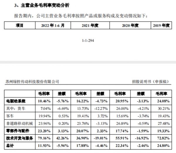 绿控传动主营业务毛利率变动情况,截图自招股书