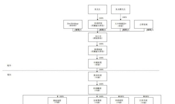 招股书显示,珍酒李渡由珍酒控股(英属处女群岛)持股81.3%,由Zest Holdings持股16.2%,由大中华网讯持股2.5%,其中珍酒控股由吴向东全资拥有。吴向东为珍酒李渡的控股股东,担任执行董事兼董事会主席。