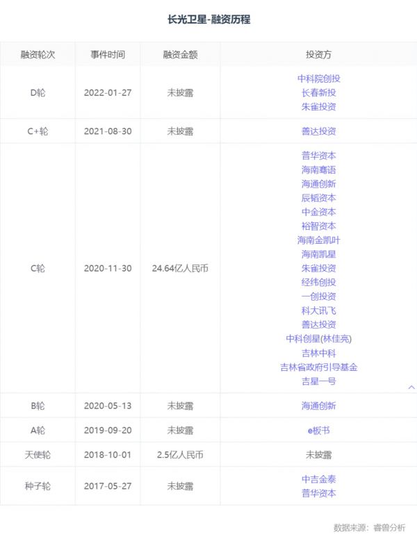 于是,从2017年获得中吉金泰的种子轮投资后,长光卫星在随后的三年均有机构投资,在2020年更是彻底爆发震惊业内,获得24.64亿元Pre-IPO融资,众多知名VC/PE赫然在列:深创投、经纬创投、中金资本、裕智资本、中科院创投、善达投资、朱雀投资、中科创星、科大讯飞、普华资本、海通创新、辰韬资本等等。
