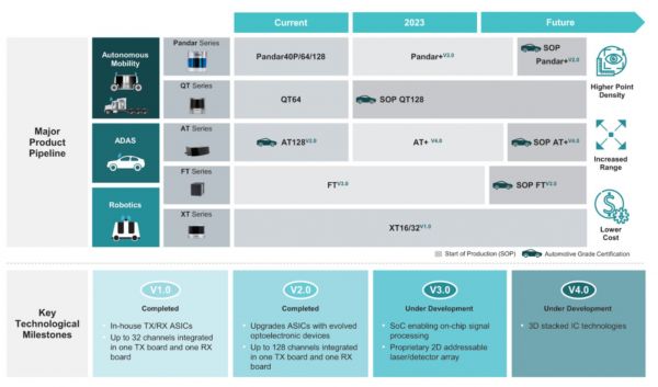 对此,禾赛解释主要原因在于其销售的产品结构从以价格较高的Pandar系列产品为主,转向价格较低的QT、XT和AT系列产品为主,毛利率因此降低。