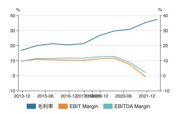 转型并加强自主研发后,公司自主研发产品销售占比提升,带动整体毛利率出现明显上涨,从2017年的21.24%逐步升至去年三季度的37.48%。然而,从净利率角度来看,海量数据毛利率提高所带来的利润多被研发和营销投入抵消,EBIT Margin不但没有明显增长,还从2018年的10.01%下滑至2021年的1.22%。而2022年由于营收下降、费用持续增长,公司的净利率更是直接转负。