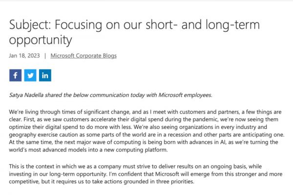 微软高层筹划裁员或许已经很久了。去年年底纳德拉就已经进行过相关暗示。当时他在接受CNBC采访时表示,全球经济变化也会影响到微软,科技公司未来两年可能会面临挑战局面,需要提高自己的运营效率和生产力。而裁员显然是提高效率的最直接手段。