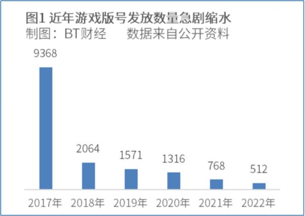 2022年,中国新发游戏版号512个,较2021年减少近三分之一,该数字在2019年和2020年每年高达约1500个。