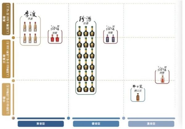 招股书显示,珍酒李渡的产品主要针对次高端及以上级别的白酒市场。珍酒李渡旗下有四个主要的白酒品牌,分别是旗舰品牌珍酒、李渡、湘窖和开口笑。珍酒和李渡分别来自贵州和江西,由吴向东2009年收购;湘窖和开口笑是湖南品牌,被吴向东在2003年收购。