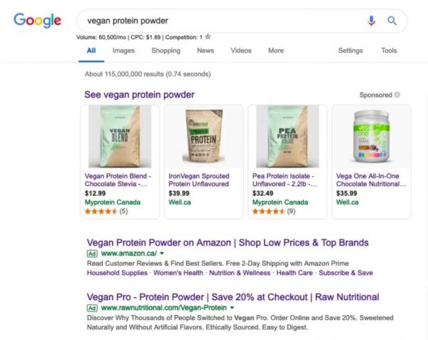 此外,广告主可以设计文字版广告,并将广告文案显示在用户的搜索结果中,或者创建可以显示关键购买信息(例如产品照片,价格和评分)的谷歌购物广告。