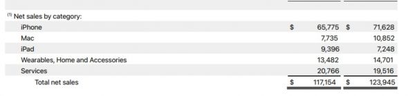 苹果营收下滑,并非单一因素造成,而是多个方面综合的结果。其中,对整体营收影响最大的是来自于iPhone的营收同比下降8%,为657.75亿美元。