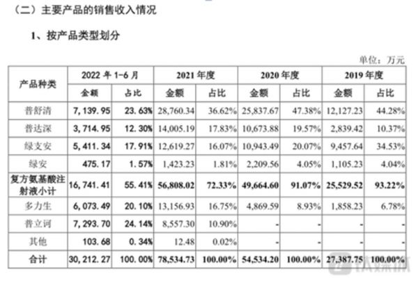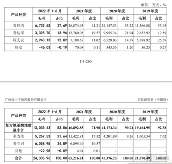 从产品上看,穗绿十字主要拥有普舒清、普达深、绿支安、绿安等产品,产生的销售收入具体如下: