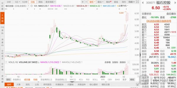 福石控股(300071.sz)也是最近涨得比较猛的一个ChatGPT概念股,福石控股1月30日至今股价也接连上涨,从概念爆发初期的4.12元/股涨到现在6.5元/股,股价累计涨幅超过50%。