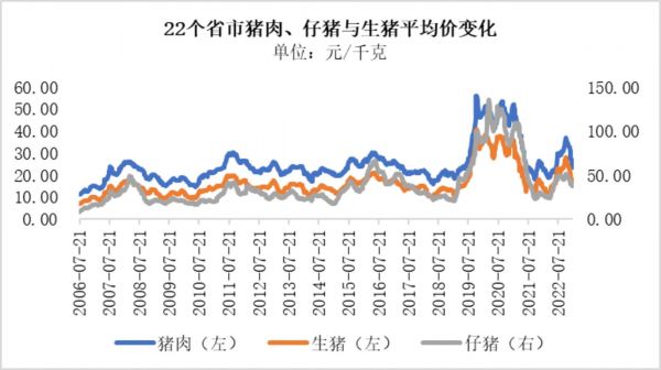 事实上,从2022年11月开始,国内22个省市的猪肉平均价格就开始出现了下跌的现象,相应地,国内仔猪与生猪的价格也基本同步下跌。