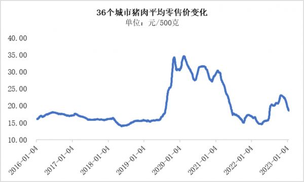 即使从36个城市猪肉的平均零售价变化来看,其价格于去年11月初也开始波动下跌。
