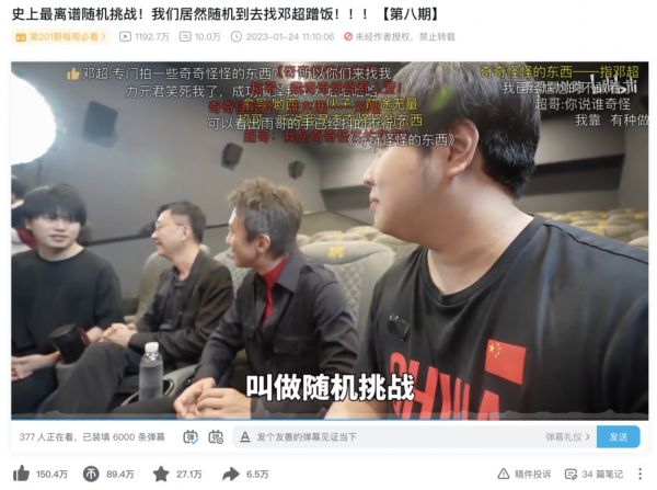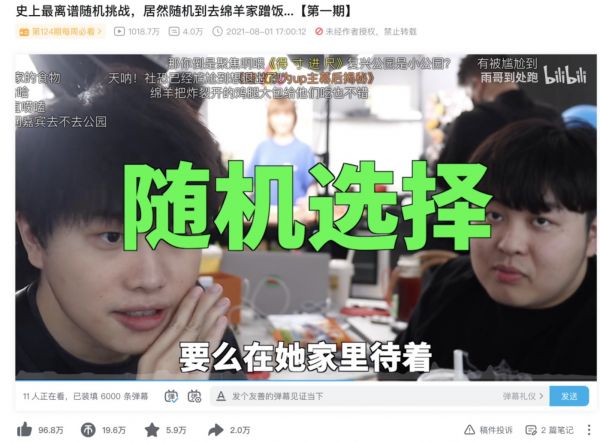 在此之后,两人延续了这一期视频中受欢迎的点。将原本的“随机挑战”固定成拥有特殊任务的“蹭饭挑战”。观众们关注的点,也从发生多少“随机”的事情,转移到这一期视频又会去见到哪一位新的UP主。