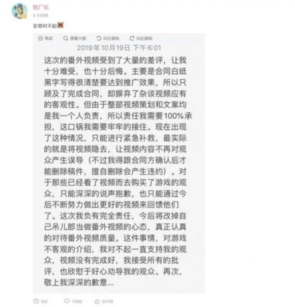 敖厂长为视频道歉