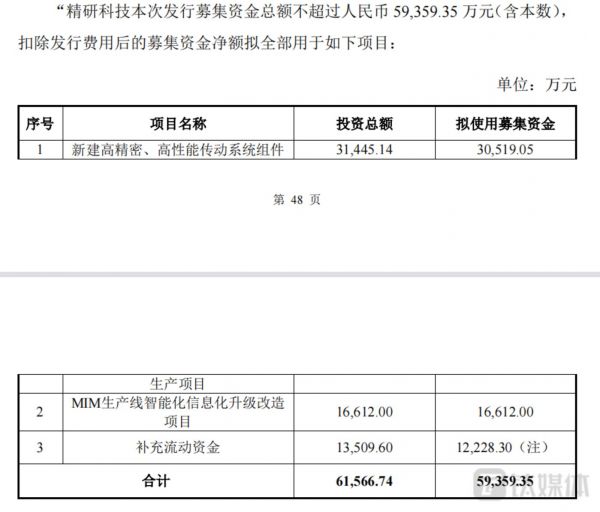 截至目前,精研科技新建高精密、高性能传动系统组件生产项目已累计投入资金2215.92万元,投资进度为7.05%;MIM生产线智能化信息化升级改造项目已累计投入资金3081.16万元,投资进度为18.55%。