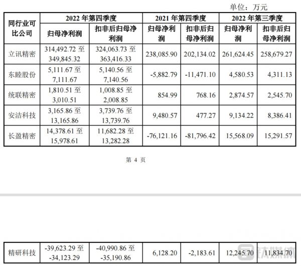 近日,苹果公布了2022年第四季度业绩,遭遇2019年以来首次单季度营收下降。然而,与苹果牢牢绑定的“果链”供应商日子也不好过。2月8日晚间,精研科技(300709,SZ)回复了深交所下发的关注函。受海外大客户降价、砍单等因素影响,第四季度业绩“大变脸”,盈利水平难敌同行业可比公司。