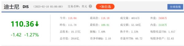 财报发布后迪士尼股价一路看涨,盘后上涨逾5%,最终收盘于111.78美元,仅微涨0.13%,总市值为2042亿美元。但在次日股价又出现回落,下跌1.27%,距离2021年3月31日的203.02美元/股的高点,暴跌了46%,股价几近腰斩。