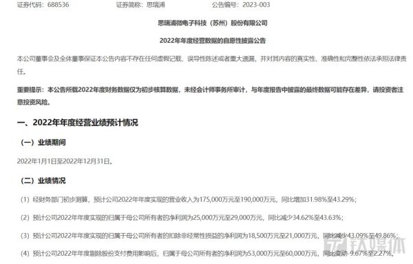 2月9日晚间,思瑞浦(688536.SH)披露了2022年业绩预告,预计报告期内增收不增利,其中归属净利润最少下降34.62%。