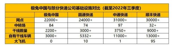 公开资料显示,无论是网点、干线数量,还是自有车辆、大飞机,极兔大都逊于通达系,传导到需求端,便是时效慢、服务差,丢件率和差评率高。