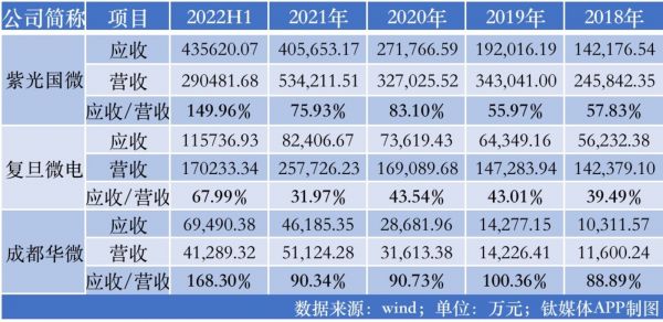 (成都华微应收/营收与同行对比图,来源:钛媒体APP制作)