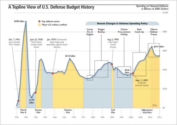 2023财年,美国国防预算将达到8500亿美元,即便考虑通胀因素,这也创造了战后美国国防预算的新纪录。美国目前对军事力量的资金投入已远超朝鲜战争、越南战争、海湾战争、阿富汗战争等所有应急状态。