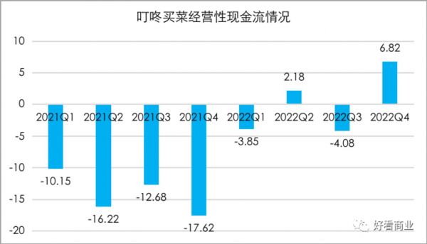 另外值得一提的是,叮咚的资金状况也在Q4明显改善。该季度,叮咚一改过去经营性现金流净流出的状况,实现经营性现金流入6.8亿元;2022全年实现正向经营性现金流。