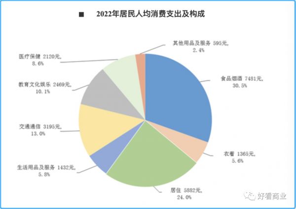 民以食为天,从古至今都是如此。据国家统计局的数据,2022年,全国居民人均食品烟酒消费支出7481元,同比增长4.2%,是增速居前的消费类目;食品烟酒消费在人均消费支出中占比也最大,达到30.5%。