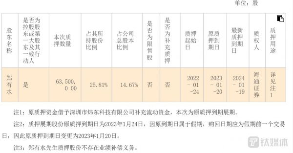 1月30日,金龙羽发了一个公告,公司的实控人郑有水持有的金龙羽股份,获得了海通证券的展期许可。