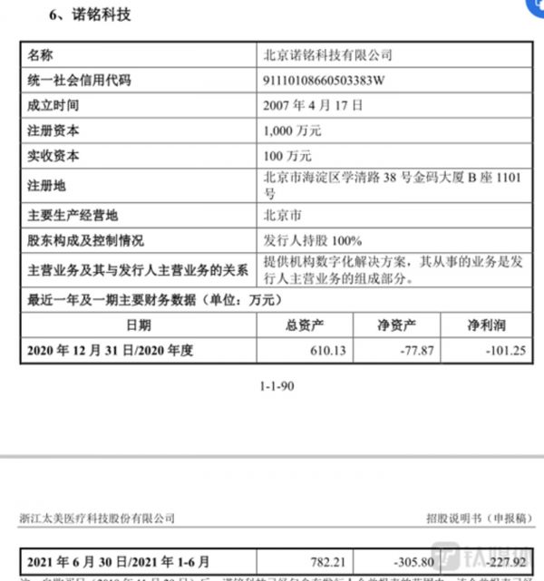 有意思的是,2020年和2021年上半年,诺铭科技的净利润分别为-101.25万元、-227.92万元,净资产分别为-77.87万元、-305.8万元,如此的业绩表现也值2300万元。有关上述问题,钛媒体 APP 发函至公司,但截至截稿,没有收到公司的回复。(本文首发于钛媒体 APP,作者|邓皓天)