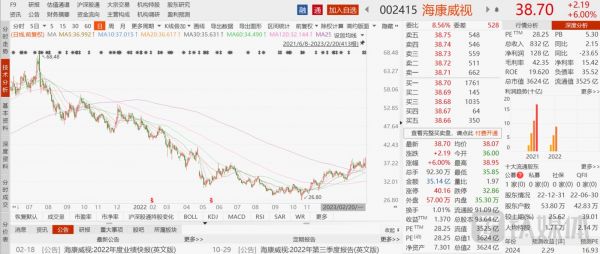 虽然目前公司股价已经重返36元上方,但是相较高点跌幅仍是跌超42%。截至2月20日收盘,海康威视收涨6%,股价报于38.7元,最新总市值3624亿元。
