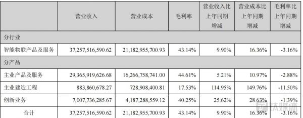 从两块业务的毛利率来看,主营产品及服务和创新业务的毛利率分别是44.61%和40.25%。