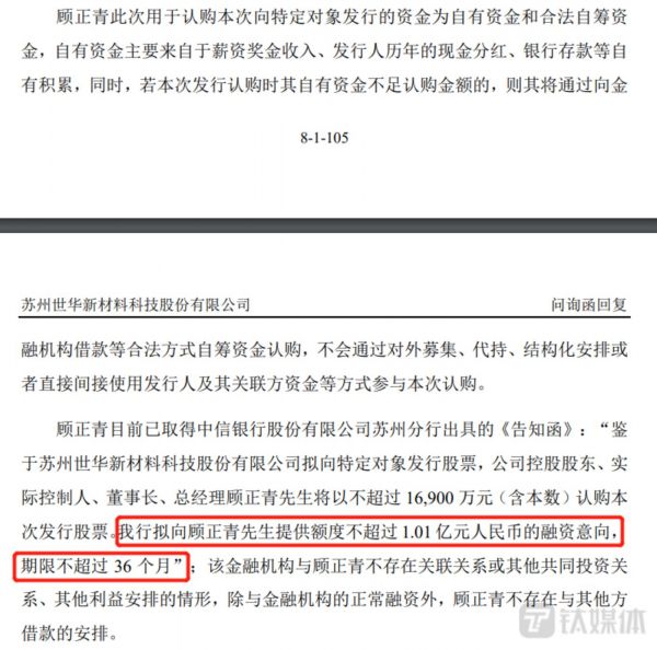 值得注意的是,2月10日世华科技在对上交所的问询回复中曾表示,公司控股股东、实际控制人顾正青参与本次认购。