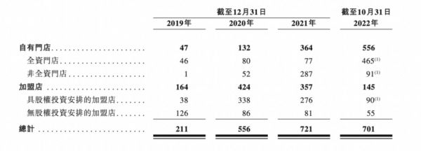 截至2022年10月底,KK集团门店数相比2021年底减少20家,自有门店556家,加盟店145家。如果单看加盟店,减少200多家。若不是自有门店的开拓——开店192家,KK集团的门店收缩更为明显。
