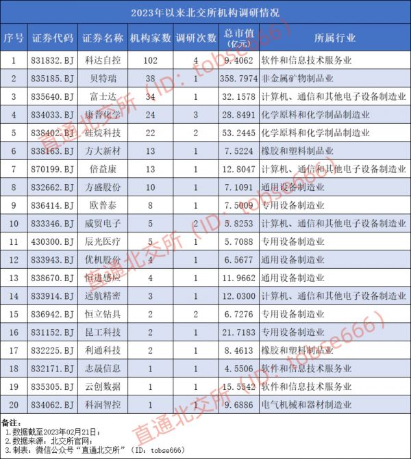 据直通北交所统计,自今年以来,北交所172家上市公司中,已有20家公司获得机构调研。机构累计调研28次,调研机构家数累计294家。