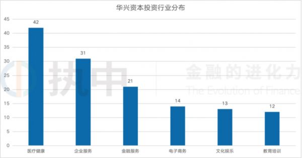 其中,华兴资本的投资策略主要聚焦在医疗健康、企业服务、金融服务、电子商务以及文化娱乐等行业。其中医疗健康与企业服务的布局尤重,占到华兴所有出手项目数的近1/3的比重。
