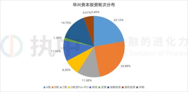 根据执中ZERONE统计,华兴资本的投资项目主要聚焦在早期,A轮占比22.12%,B轮项目占比24.88%,占比将近50%。