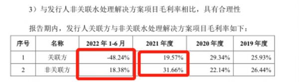 可见,2021年和2022年上半年,晶宇环境关联方与非关联方水处理解决方案业务的毛利率均存在较大的差距,特别是2022年上半年,晶宇环境与关联方水处理解决方案业务的毛利率更是为-48.24%。那么,如此毛利率的情况下,晶宇环境为何还能表达其关联交易价格公允?