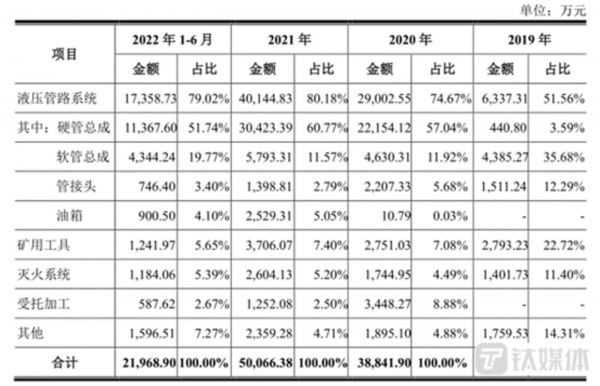 更加令人费解的是,福事特主要拥有液压管路系统、矿用工具、灭火系统等业务,其中液压管路系统主要由硬管总成、软管总成、管接头、邮箱构成,具体情况如下: