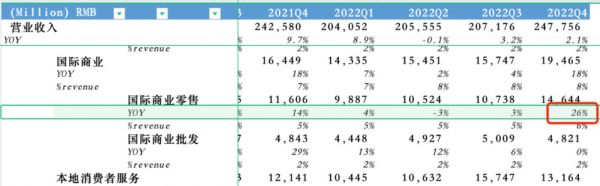 2、不过这次国际零售业务,表现非常出色,增速26%。