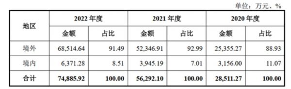 矽递科技招股书披露了2020-2022年的财报,虽然恰逢三年疫情,但这对其业绩并无明显影响,这或许主要是因为矽递科技的收入主要来自于海外市场。