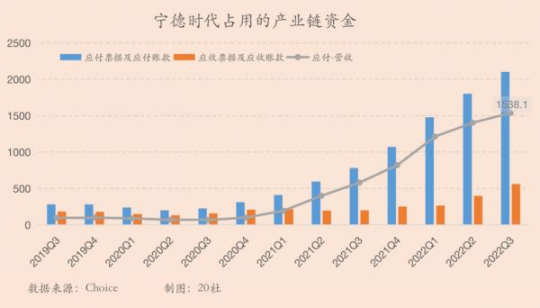 宁德时代 Q3 的应付票据及应付账款创纪录地达到了 2100 亿,应收票据及营收账款也上升到了 561.9 亿,应付和应收差额达到了 1538.1 亿元。用产业链的钱,办自己的事。