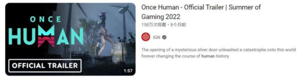 《代号:EOE》定名为《Once Human》后在2021年10月测试过手游版,其PC版在去年11月开启首测,预计在2023年Q4上线Steam,在IGN展会上的首曝视频于youtub上获得近160万播放。