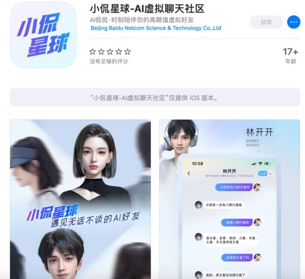 图注:百度AI虚拟聊天社区。