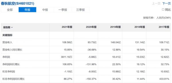 但另一边的春秋航空却已在2021年实现了净利润3911万元的逆势表现。