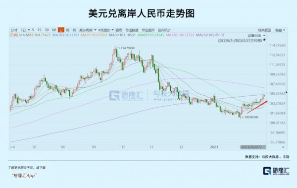 决定美联储货币政策有两只手,一个是就业,一个是通胀。就业数据异常火爆,也代表着通胀粘性会比较大,也自然会影响美联储加息的节奏。2月3日到6日,美元指数2个交易日累计大涨近2%,开启本轮反攻大势。