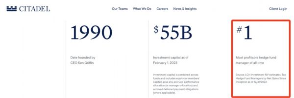 Citadel的官网上已经开始展示「史上最赚钱的对冲基金」,Citadel