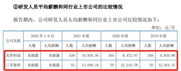 有意思的是,虽然毛利率不如同行,但天承科技研发人员的待遇却远高于同行。公开资料显示,2019年-2021年,天承科技研发人员的人均薪酬分别为18637.34元/月、17876.56元/月、18577.91元/月,而同行可比公司研发人员的薪酬具体如下: