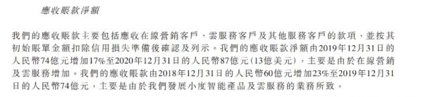 百度回港上市的招股书中提到,应收账款的增加主要是由于发展小度智能产品及云服务所致,鉴于小度智能在百度非在线营销营收中占比不高,那么可能更多来自于智能云服务。