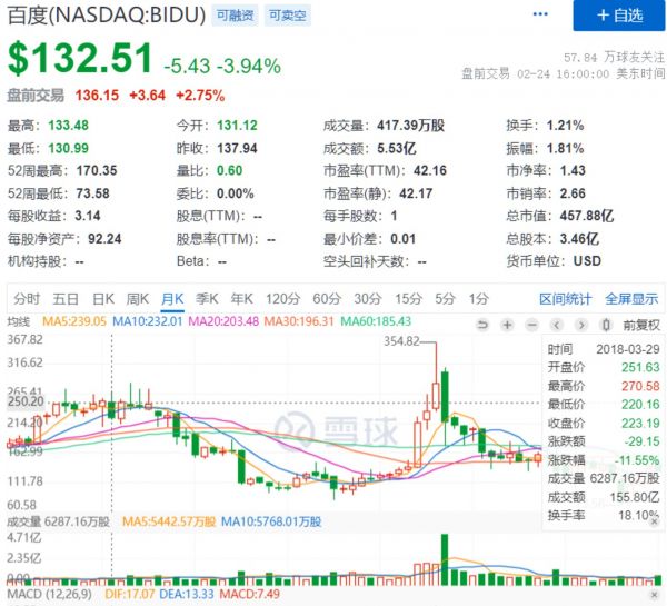 以股价来论,2018年百度的市值创下了当时的新高,首次突破千亿美金大关,直到陆奇离职,百度的自动驾驶等各项AI相关的业务估值开始暴跌。2019年初自动驾驶企业waymo估值被下调40%,AI寒冬开始到来。