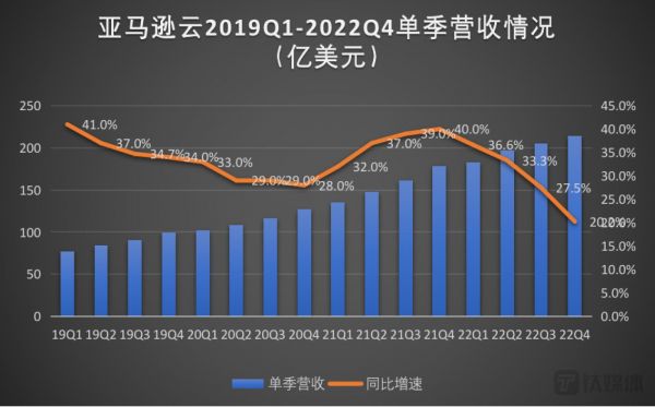 钛媒体App梳理数据发现,亚马逊云业务的营收在过去四年出现了十分明显的增长放缓迹象。2022年第四季度,亚马逊云营收实现213.8亿美元,同比增长20%,成为亚马逊云的历史最低增长率,而这一数据在2018年达到了45%;实现经营利润52亿美元,经营利润率下滑到24%,连续四个季度收窄。