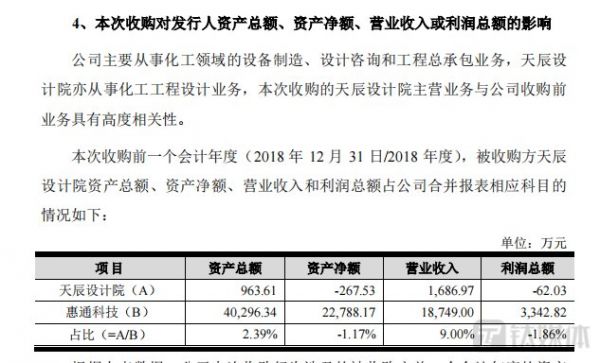 钛媒体APP注意到,此次收购天辰设计院价格不低。截至2019年3月31日,天辰设计院净资产评估值为3310万元,2018年末天辰设计院资产总额为963.61万元,资产净额为-267.53万元,利润总额为-62.03万元,增值额为3577.53万元。