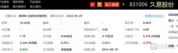 钛媒体APP注意到,此次久易股份IPO或使其估值实现质的飞跃。2014年,久易股份登陆在新三板挂牌,Choice金融终端显示,截至2022年6月20日,久易股份的总市值为8.84亿元。2022年6月23日,久易股份提交的申报稿被深交所受理,欲募集93843.68万元,公开发行不超过25%的股权,若久易股份成功上市后,其估值或将达到37.54亿元。那么,为何短短3天本来市值仅不到9亿元的久易股份“敢”向市场“说”自己值37.54亿元?